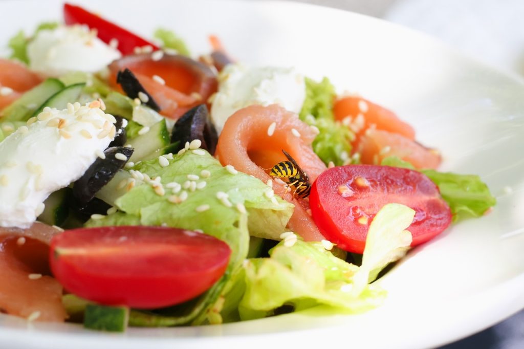Bees and wasps always find human food and drink irresistible, and people usually have some nearby when out for a dip.