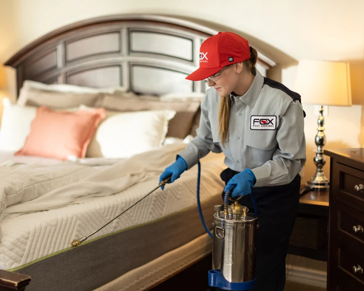 Fox Pest Control’s two-step approach is one of the most effective and efficient treatments for bed bug infestations. First, we’ll spray an effective insecticide in typical bed bug traffic areas. Then, we’ll apply insecticide dust to outlets and other hiding spots for bugs. This process is repeated 14 days later to ensure a thorough job of treating your infestation.