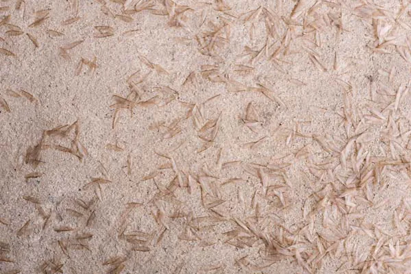 Discarded termite swarmer wings near windows and doors suggest termite activity.