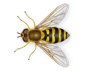 Hoverflies, or flower flies, are harmless little guys that are often mistaken for bees because of their yellow and black striped patterns. However, hoverflies are actually flies, not bees, and they have only one pair of wings, unlike bees, which have two pairs. They’re called “hoverflies” because they can hover in place as they feed on nectar from flowers. They don’t sting and are actually great for your garden since they help pollinate plants just like bees do!