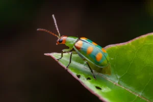 Did you know: Many leaf beetles have vibrant and colorful patterns that make them stand out. They also exhibit behavior called “reflex bleeding,” where they release foul-smelling blood to deter predators.