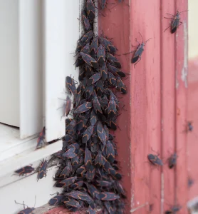 Boxelder bugs don’t really harm plants, but they can be annoying for homeowners. In the fall, they gather in big groups on the sunny side of houses, trying to find a warm place to spend the winter. When they group up like this, they’re often called an “intrusion” or just a “nuisance” because they tend to crowd together, especially as the weather gets colder.